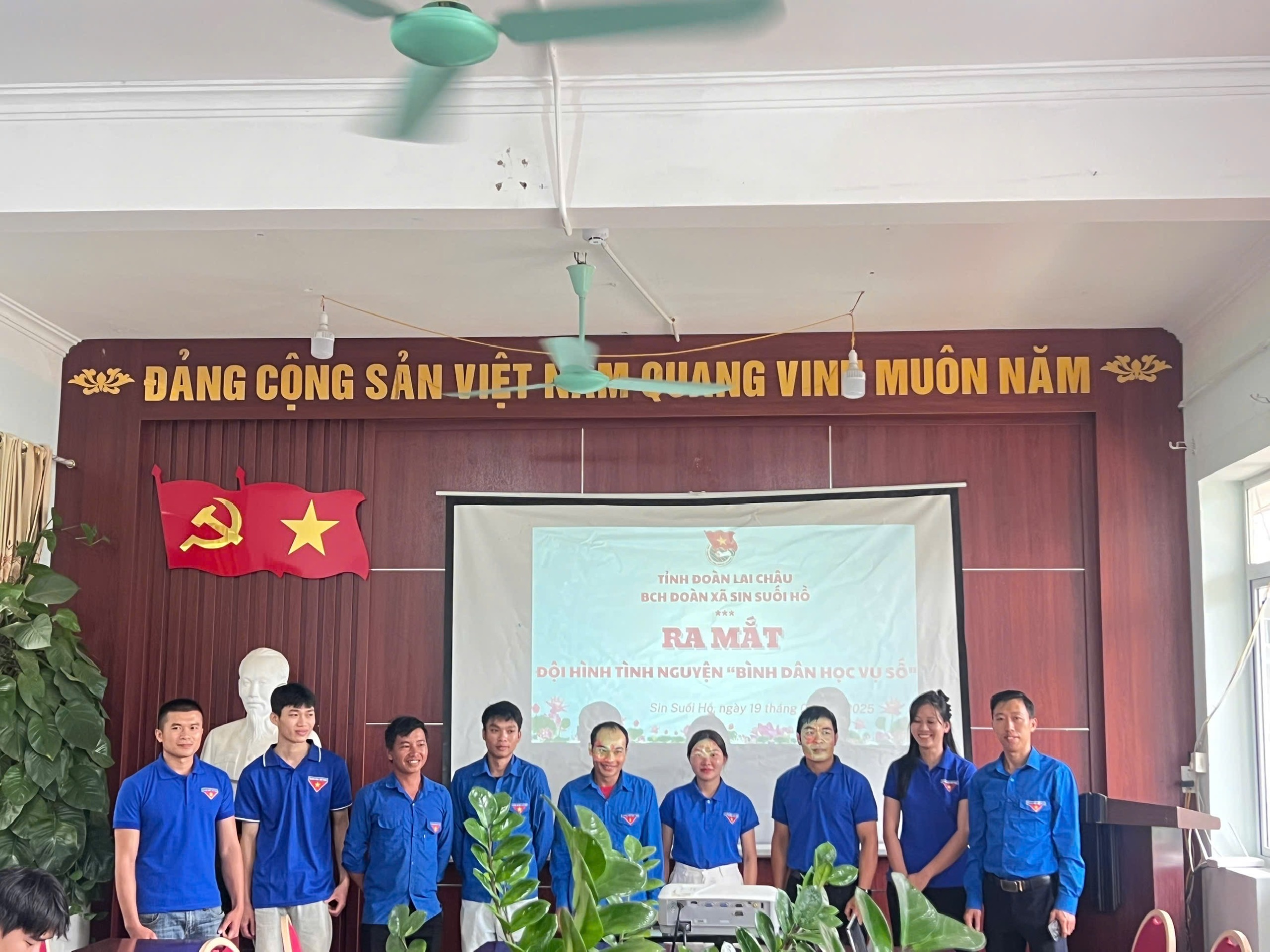 Ngày 19/7/2025, Đoàn xã Sin Suối Hồ tổ chức Lễ ra mắt và công bố Quyết định thành lập 02 Đội hình tình nguyện Bình dân học vụ số, thực hiện theo Quyết định số 03-QĐ/ĐTN ngày 10/7/2025 của Ban Chấp hành Đoàn phường về việc thành lập lực lượng tình nguyện hỗ trợ người dân tiếp cận, sử dụng các nền tảng số.