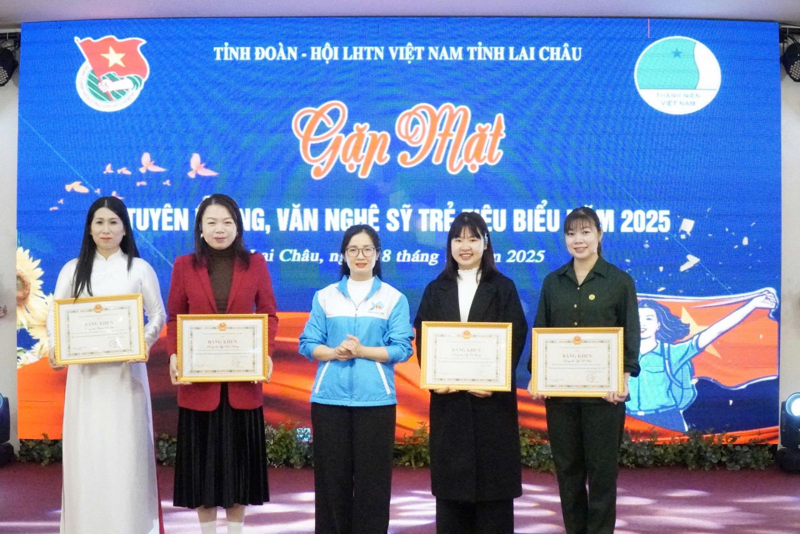 Chiều ngày 18/11/2025, Tỉnh đoàn - Hội Liên hiệp Thanh niên Việt Nam tỉnh Lai Châu phối hợp tổ chức chương trình “Gặp mặt, Tuyên dương Văn nghệ sĩ trẻ tiêu biểu năm 2025”. Đây là hoạt động ý nghĩa nhằm tạo điều kiện để lực lượng văn nghệ sĩ trẻ trong tỉnh được gặp gỡ, giao lưu, trao đổi, chia sẻ kinh nghiệm, chuyên môn và tôn vinh, động viên những gương mặt trẻ có nhiều đóng góp xuất sắc trong lĩnh vực văn hóa, văn nghệ của tỉnh.