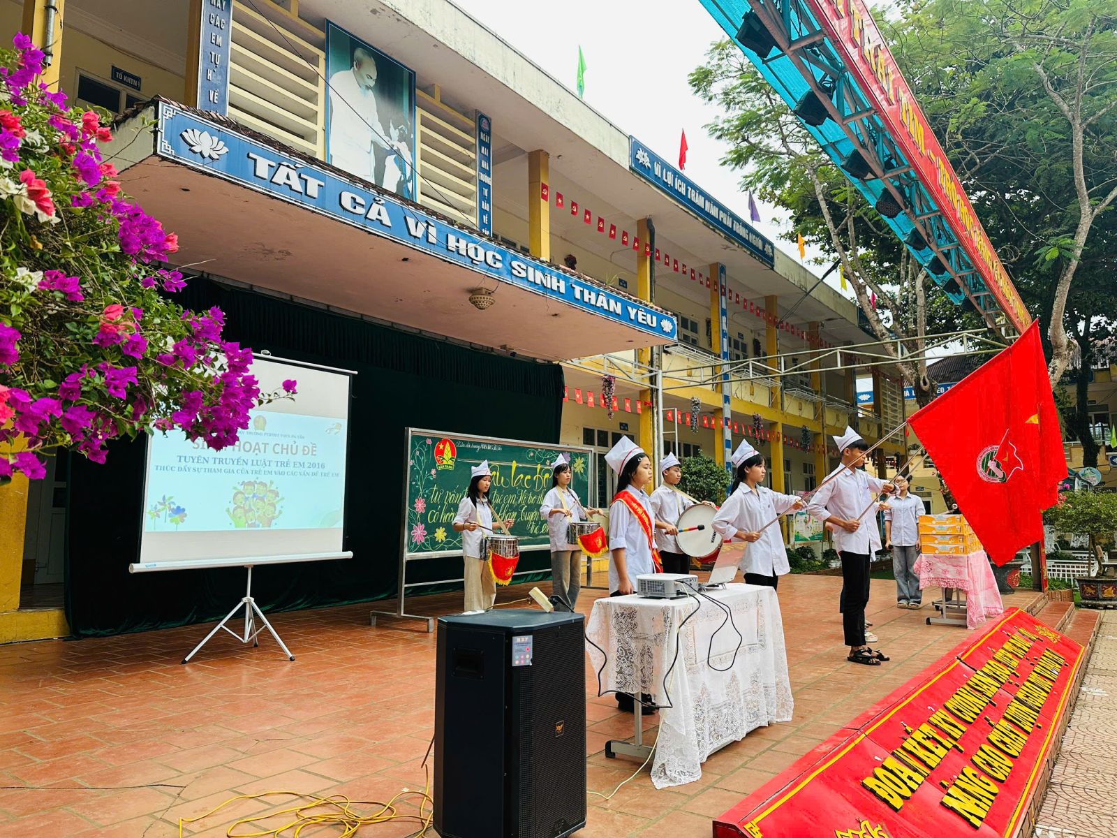 Đến dự chương trình có các đồng chí Bùi Thị Thanh Hoà - Ủy viên Hội đồng Đội tỉnh, Phó chủ nhiệm Câu lạc bộ Tư vấn, trợ giúp trẻ em; Tẩn Út Long - Phó Chủ tịch Mặt trận Tổ quốc Việt Nam xã Pa Tần - Bí thư Đoàn - Chủ tịch Hội đồng Đội xã Pa Tần; Nguyễn Tiến Thành - Hiệu trưởng trường PTDTBT THCS Pa Tần cùng thành viên Câu lạc bộ Tư vấn, trợ giúp trẻ em cấp tỉnh; toàn thể giáo viên và học sinh nhà trường.