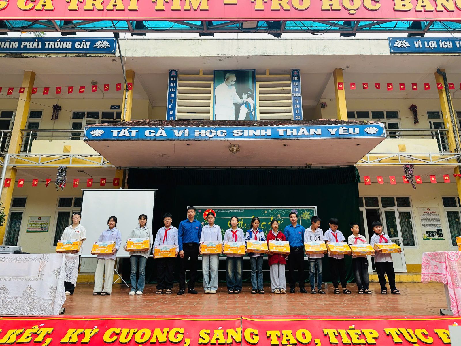 Cũng tại chương trình, Câu lạc bộ tư vấn, trợ giúp trẻ em trao tặng 20 thùng sữa trị giá 10 triệu đồng cho học sinh có hoàn cảnh khó khăn của nhà trường.