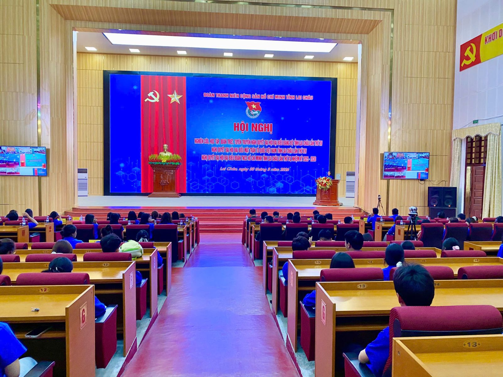 Ngày 30/3/2026, Ban Thường vụ Tỉnh đoàn tổ chức Hội nghị nghiên cứu, học tập, quán triệt và tuyên truyền Nghị quyết Đại hội đại biểu Đảng bộ tỉnh Lai Châu lần thứ XV; Nghị quyết Đại hội đại biểu Mặt trận Tổ quốc Việt Nam tỉnh Lai Châu lần thứ XIV; Nghị quyết Đại hội đại biểu Đoàn TNCS Hồ Chí Minh tỉnh Lai Châu lần thứ XV, nhiệm kỳ 2025 - 2030. Hội nghị được tổ chức bằng hình thức trực tiếp kết hợp với trực tuyến kết nối từ điểm cầu tỉnh đến 36 điểm cầu xã trên địa bàn tỉnh. Dự Hội nghị có các đồng chí đại diện lãnh đạo Ban Tuyên giáo và Dân vận Tỉnh ủy; Ban Thường trực Ủy ban MTTQ Việt Nam tỉnh; Thường trực Tỉnh đoàn cùng đông đảo cán bộ Đoàn, đoàn viên, thanh niên trên địa bàn tỉnh.
