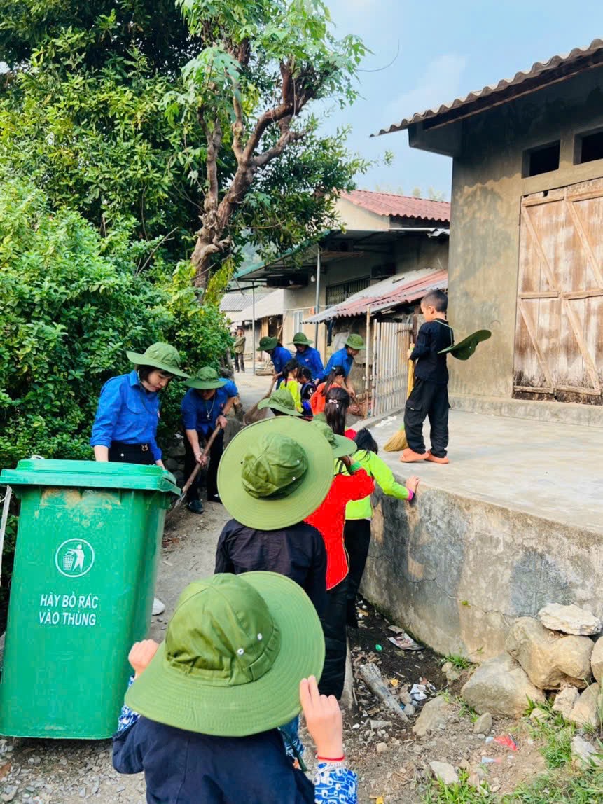 Đoàn xã đã thành lập Đội hình thanh niên tình nguyện thường xuyên, huy động đoàn viên các chi đoàn trong bản tham gia duy trì hoạt động hằng tuần. Các phần việc được triển khai bao gồm: dọn dẹp vệ sinh đường trục bản, thu gom – phân loại rác thải, phát quang bụi rậm, chỉnh trang cảnh quan khu dân cư, tạo môi trường sống sạch đẹp, an toàn cho bà con.
