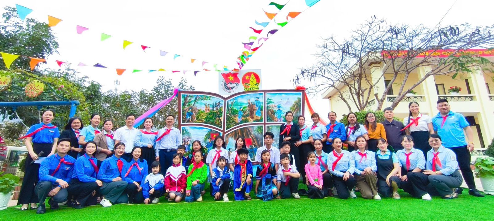Kim Đồng - Người đội viên đầu tiên của Đội Thiếu niên Tiền phong Hồ Chí Minh - là tấm gương sáng ngời về lòng yêu nước, sự dũng cảm và tinh thần hy sinh quên mình vì đất nước. Cuộc đời của anh tuy ngắn ngủi nhưng đã để lại một di sản vô giá cho biết bao thế hệ thiếu nhi Việt Nam. Tinh thần anh dũng của anh Kim Đồng đã và đang tiếp tục khơi dậy niềm tự hào dân tộc trong lòng các thế hệ trẻ. Công trình măng non chào mừng Đại hội Cháu ngoan Bác Hồ cấp là về cuộc đời Kim Đồng - là một biểu tượng sinh động và ý nghĩa. Bức tranh được vẽ trên nền pano xi măng kích thước 350 cm x 350cm, bao gồm 06 bức tranh miêu tả về cuộc đời của Kim Đồng, công trình được đầu tư với tổng giá trị 20 triệu đồng, do họa sỹ Hà Minh Hưng phác họa.